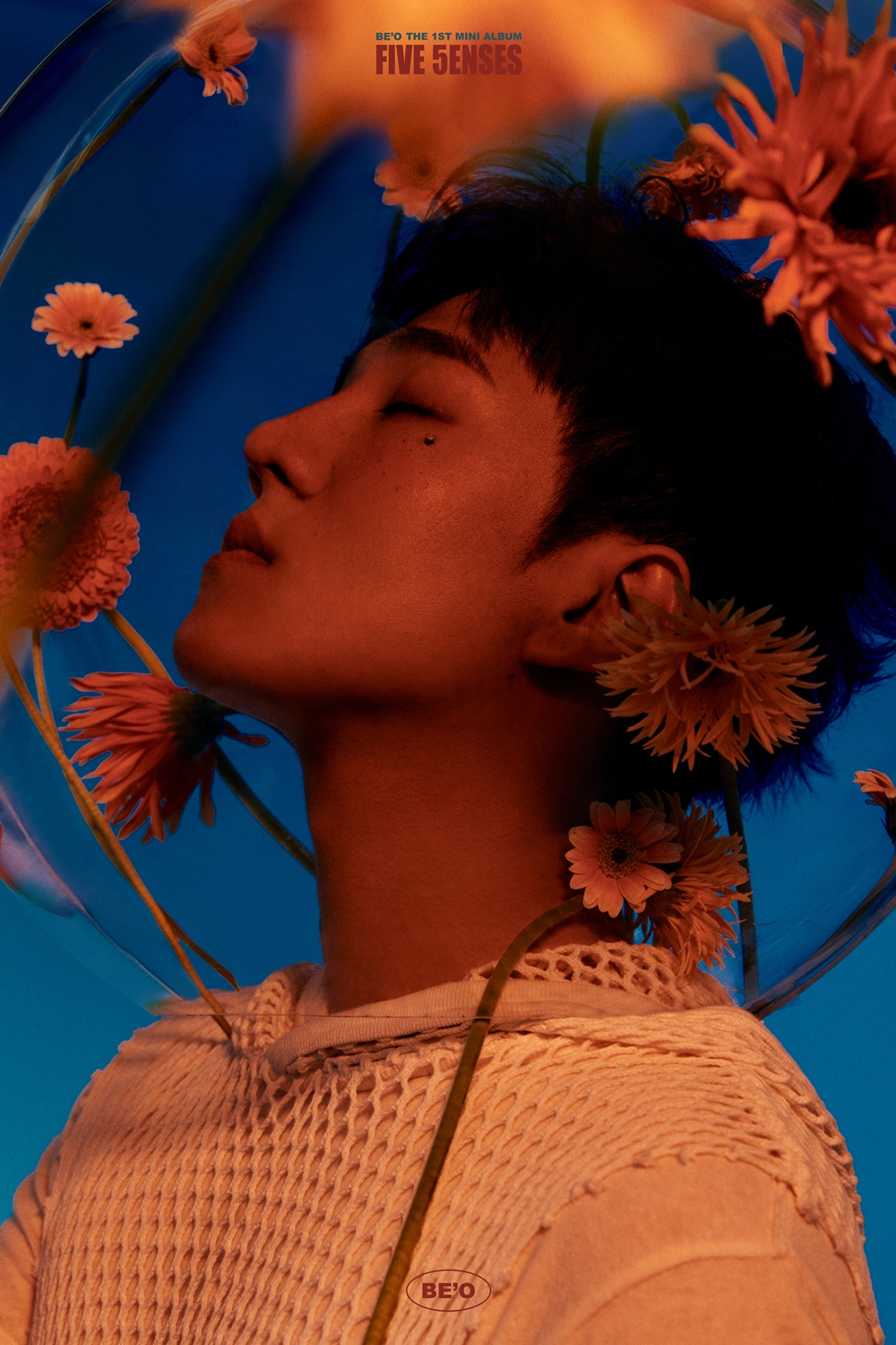 콘셉트 포토 속 비오는 꽃 사이에서 눈을 감고 고개를 든 포즈를 취하고 있다. 따뜻한 색감의 조명과 어딘가 신비로운 분위기가 다양한 추측을 불러일으키며 'FIVE SENSES'를 향한 기대감을 높인다.