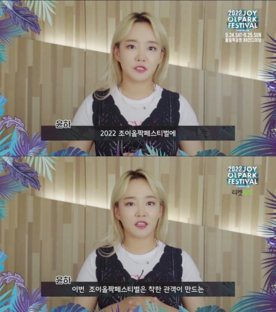 한편 '2022 조이올팍페스티벌'은 서울 올림픽공원 88잔디마당에서 개최되며 윤하의 무대는 24일 오후 6시 20분부터 40분간 만나볼 수 있다.