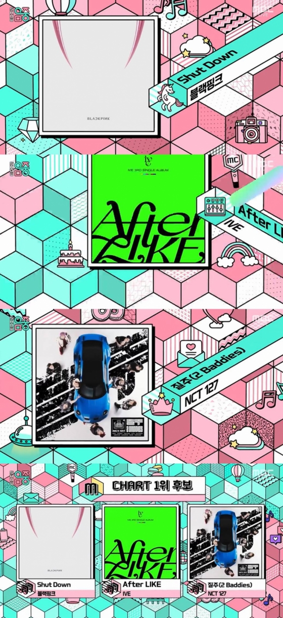 블랙핑크는 'Shut Down'(셧 다운), 아이브는 'After LIKE'(애프터 라이크), NCT 127은 '질주(2 Baddies)'로 1위 트로피를 놓고 대결한다.