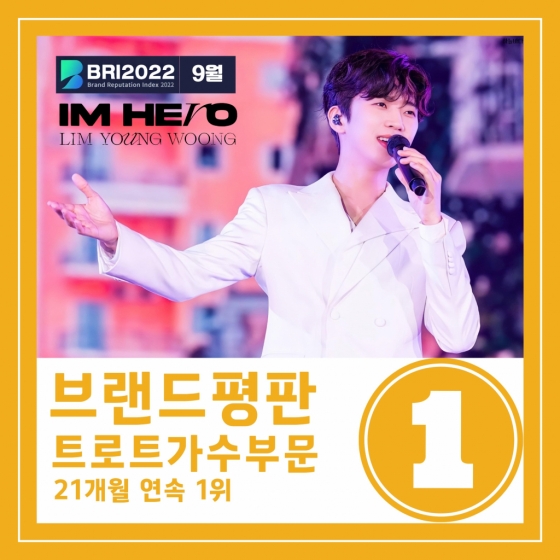 임영웅은 9월 25일 한국기업평판연구소가 발표한 트로트 가수 브랜드평판 2022년 9월 빅데이터 분석결과, 1위를 차지했다. 2위는 이찬원, 3위는 장윤정이었다.
