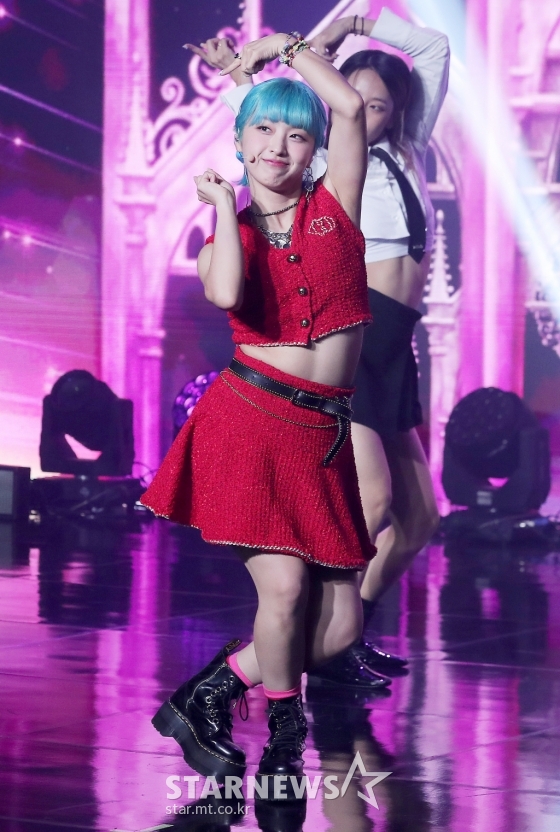 가수 아도라(ADORA)가 26일 오후 서울 강남구 청담동 일지아트홀에서 진행된 첫 미니 앨범 'Adorable REbirth'(어도러블 리버스) 발매 기념 쇼케이스에 참석해 멋진 무대를 선보이고 있다.