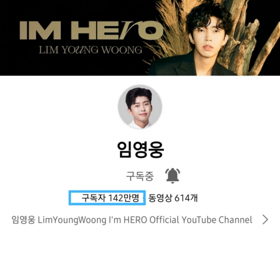 임영웅 공식 유튜브 채널 '임영웅'은 9월 27일 구독자 142만 명을 넘어섰다. 지난 8월 31일 구독자 141만 명 달성 후 한 달도 채 안 돼 1만 구독자를 늘리며 신기록을 썼다.
