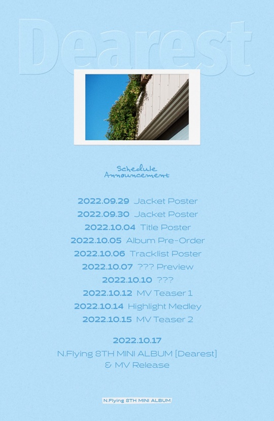 엔플라잉은 지난 28일 공식 SNS을 통해 오는 10월 17일 발매되는 여덟 번째 미니 앨범 'Dearest'(디어리스트) 플랜포스터를 공개하며 컴백을 알렸다.