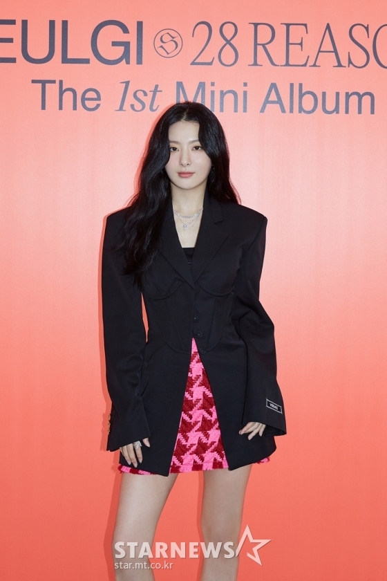 걸그룹 레드벨벳 멤버 슬기가 4일 오후 온라인으로 진행된 첫 솔로 앨범 '28 Reasons'(투애니에잇 리즌스) 발매 기념 기자간담회에 참석해 포즈를 취하고 있다.