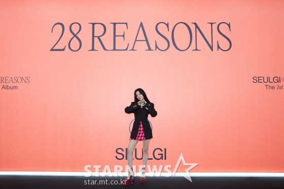 걸그룹 레드벨벳 멤버 슬기가 4일 오후 온라인으로 진행된 첫 솔로 앨범 '28 Reasons'(투애니에잇 리즌스) 발매 기념 기자간담회에 참석해 포즈를 취하고 있다.