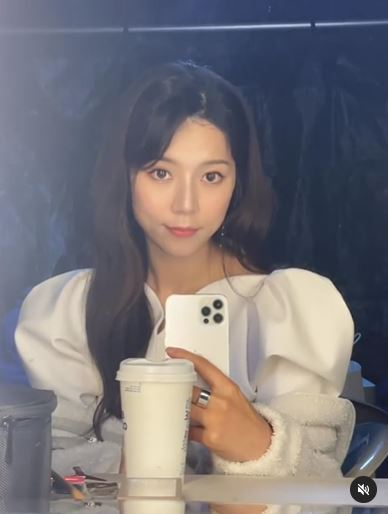 가수 양지은이 무대에 오르기 전 귀여운 표정이 담긴 영상을 찍었다.