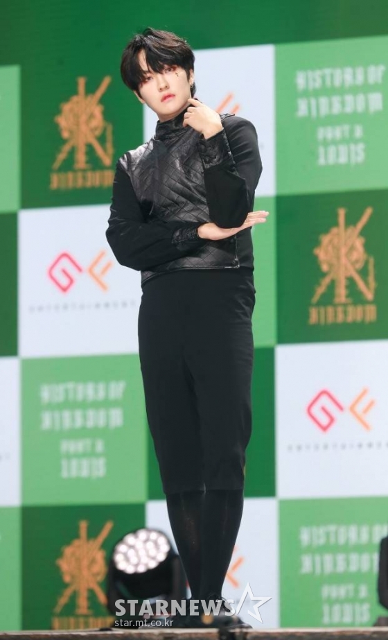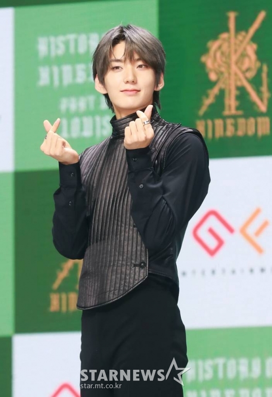 그룹 킹덤(KINGDOM) 아서가 5일 오후 서울 광진구 예스24라이브홀에서 진행된 미니 5집 '히스토리 오브 킹덤 : 파트 5. 루이'(History Of Kingdom : Part Ⅴ. Louis) 발매기념 쇼케이스에서 포즈를 취하고 있다. 이번 앨범에는 타이틀곡 '백야'(Long Live the King)를 포함해 'Intro : Requiem', '마침표', '데스티니'(Destiny), '와카 와카'(WAKA WAKA), '포이즌'(Poison), '백야' 인스트루먼트 버전까지 총 7곡이 수록됐다. /2022.10.05 /사진=이동훈 기자 photoguy@