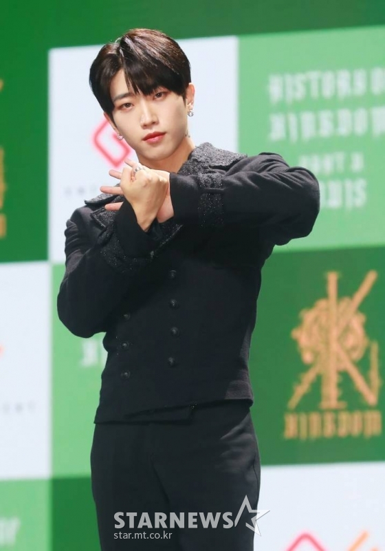 그룹 킹덤(KINGDOM) 무진이 5일 오후 서울 광진구 예스24라이브홀에서 진행된 미니 5집 '히스토리 오브 킹덤 : 파트 5. 루이'(History Of Kingdom : Part Ⅴ. Louis) 발매기념 쇼케이스에서 포즈를 취하고 있다. 이번 앨범에는 타이틀곡 '백야'(Long Live the King)를 포함해 'Intro : Requiem', '마침표', '데스티니'(Destiny), '와카 와카'(WAKA WAKA), '포이즌'(Poison), '백야' 인스트루먼트 버전까지 총 7곡이 수록됐다. /2022.10.05 /사진=이동훈 기자 photoguy@