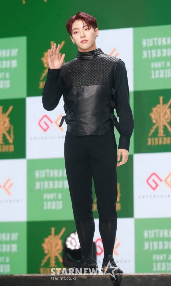 그룹 킹덤(KINGDOM)의 새 멤버 훤이 5일 오후 서울 광진구 예스24라이브홀에서 진행된 미니 5집 '히스토리 오브 킹덤 : 파트 5. 루이'(History Of Kingdom : Part Ⅴ. Louis) 발매기념 쇼케이스에서 포즈를 취하고 있다. 이번 앨범에는 타이틀곡 '백야'(Long Live the King)를 포함해 'Intro : Requiem', '마침표', '데스티니'(Destiny), '와카 와카'(WAKA WAKA), '포이즌'(Poison), '백야' 인스트루먼트 버전까지 총 7곡이 수록됐다. /2022.10.05 /사진=이동훈 기자 photoguy@