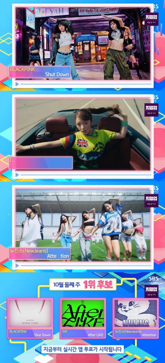 블랙핑크는 'Shut Down'(셧 다운), 아이브는 'After Like'(애프터 라이크), 뉴진스는 'Attention'(어텐션)으로 1위 후보가 됐다.