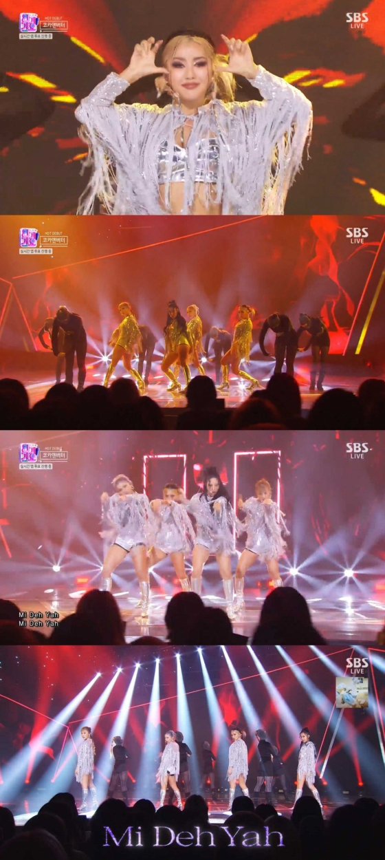 코카앤버터는 9일 오후 방송된 SBS '인기가요'에 출연해 첫 번째 싱글 앨범 'Mi Deh Yah(미데야)'의 타이틀곡 'Mi Deh Yah(Feat.쿤타)' 무대를 꾸몄다.