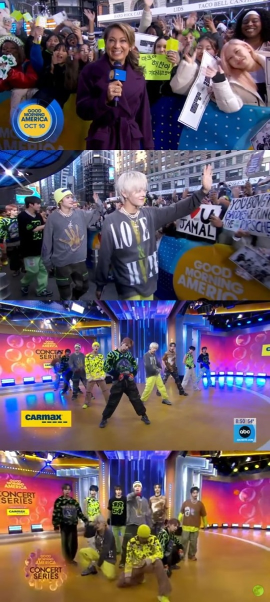 11일 소속사 SM엔터테인먼트에 따르면 NCT 127은 10일(이하 현지시간) 생방송된 미국 ABC의 간판 모닝쇼 '굿모닝 아메리카'(Good Morning America)에 출연, 정규 4집 타이틀 곡 '질주'(2 Baddies)' 무대를 선보였다.
