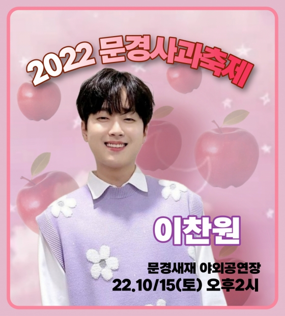 이찬원은 10월 15일 오후 2시부터 경북 문경시 문경새재도립공원 야외공연장에서 열리는 '2022 문경사과축제' 개막식 축하무대에 오른다.