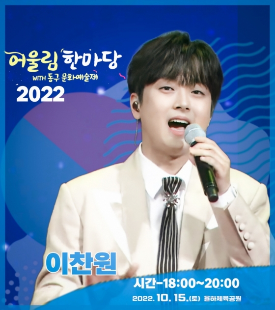 이찬원은 10월 15일 오후 6시 대구광역시 동구 율하 체육공원에서 열리는 대구 동구 주최 '2022 구민화합 어울림 한마당'의 '어울림콘서트'에 출연한다.