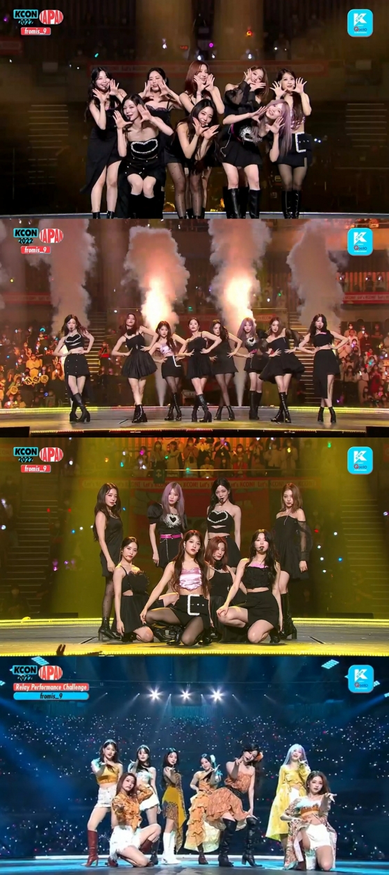 그룹 프로미스나인(이새롬, 송하영, 박지원, 노지선, 이서연, 이채영, 이나경, 백지헌)이 '케이콘' 무대로 일본 팬들을 매료시켰다.