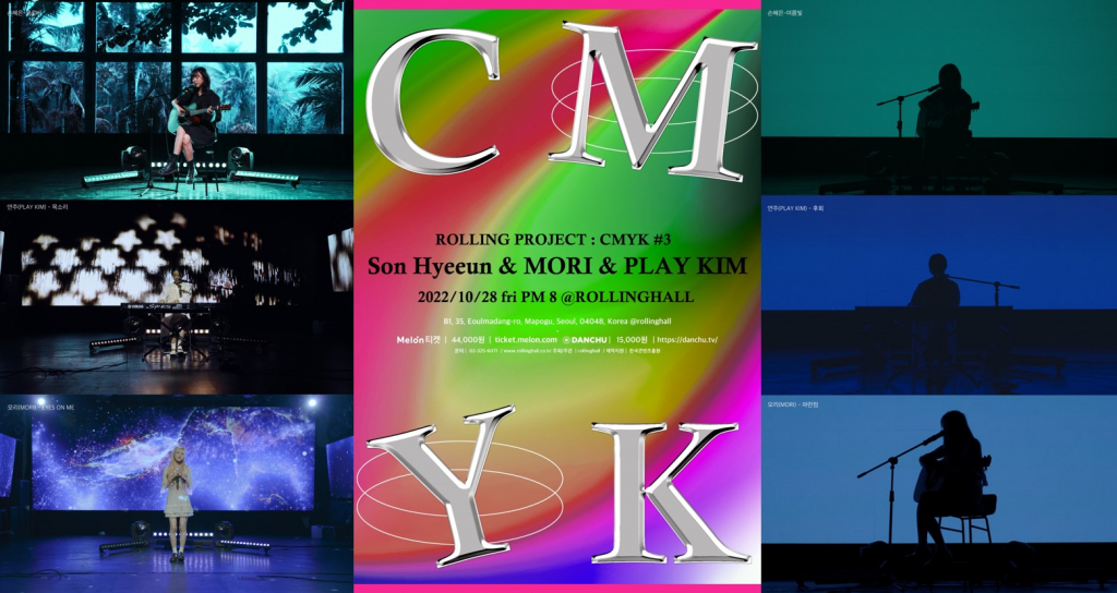 밴드의 성지 롤링홀에서 펼쳐지는 'Rolling Project : CMYK' 롤링 프로젝트 대장정의 그 세번째 공연에 싱어송라이터 손혜은, 연주(PLAY KIM), 모리(MORI) 3팀의 라이브 클립이 공개됐다.