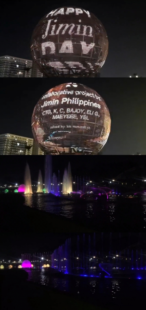 지민의 생일을 축하하기 위한 'Our MIMIverse' 프로젝트 일환으로 필리핀 마닐라의 거대한 지구본 모양의 조형물 LED 생일 광고가 현지시간으로 10월 13일 오후 6시부터 자정까지 100회 이상 송출되며 밤하늘을 아름답게 수놓았다.