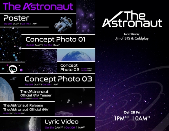 한편 20일 'The Astronaut'의 포스터가 위버스에 공개되며, 진과 '콜드플레이'(Coldplay)의 공동작업이 밝혀져 팬들은 열광했다.