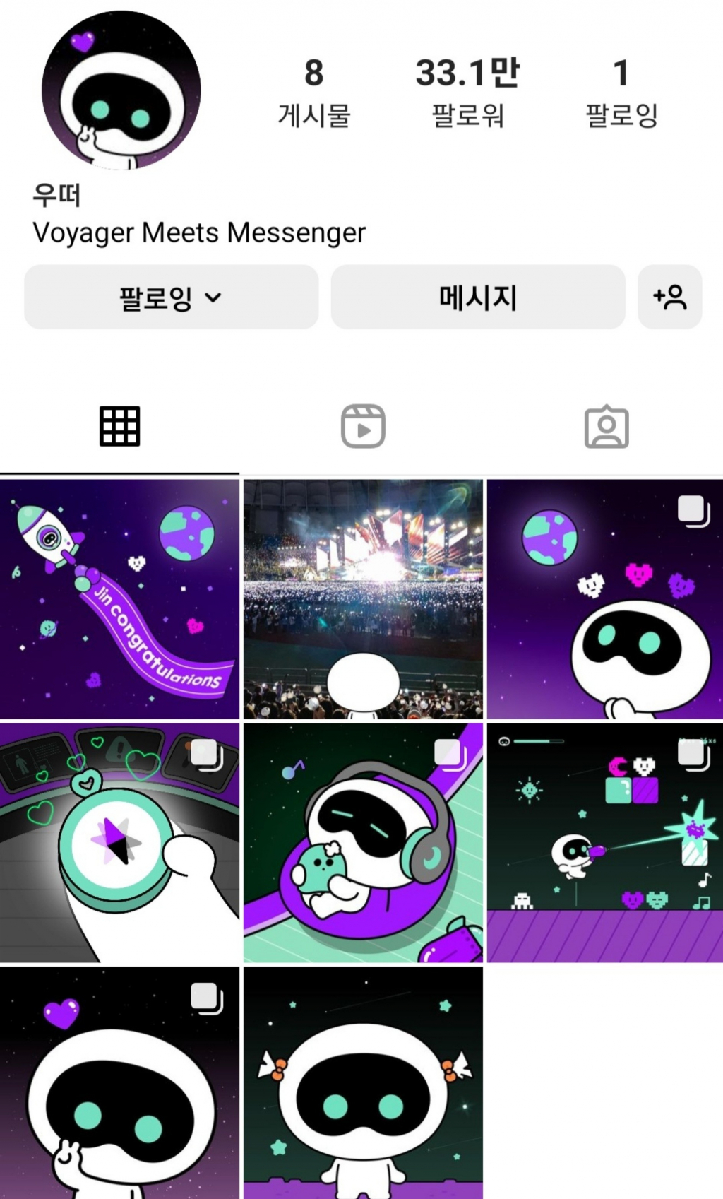 최근 진의 첫 솔로 싱글 앨범 프로모션의 일환인 캐릭터 '우떠(wootteo)'의 인스타그램 계정이 등장해 화제를 모으고 있다.