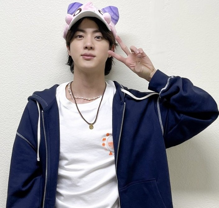 진은 지난 19일 위버스에 찾아와 팬들과 소통했다. 진은 캐릭터 우떠와 자신의 사진을 올린 팬의 글에 "내 계획에 얘는 2주 뒤 짜잔 얘는 누구입니다 공개였는데.."라며 아쉬워했다.