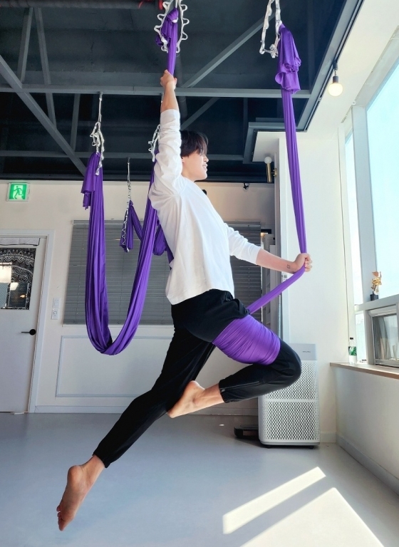 앞서 공개된 '플라잉 요가' 1편에서 완벽한 팅커벨 자세를 선보여 감탄을 자아낸 지민은 2편에서도 독보적 기량의 에이스답게 시범 조교로 맹활약, 섬네일을 장식하기 위한 단체촬영에서 역시나 빠르게 안정된 자세로 미션에 성공했다.