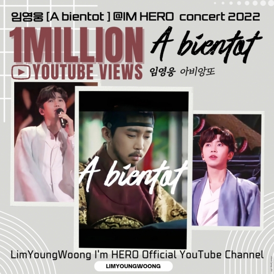 임영웅이 지난 18일 공식 유튜브 채널을 통해 공개한 '임영웅 [A bientot] @ IM HERO concert 2022' 영상은 10월 26일 조회수 100만 뷰를 넘어섰다.