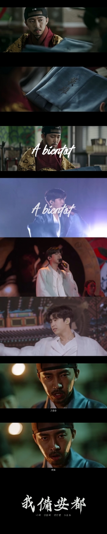 임영웅은 영상에서 전국투어 단독콘서트에서 정규 1집 'IM HERO' 수록곡 'A bientot' 무대와 임금으로 분한 사극 '웅조'를 섞어 눈부신 매력을 발산했다.
