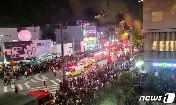 (서울=뉴스1) 김예원 기자 = 29일 밤 서울 용산구 이태원 한복판에서 심정지 환자가 대규모로 발생했다. 3년 만에 첫 '야외 노마스크' 핼러윈을 맞아 인파가 몰리면서 대규모 압사사고가 일어난 것으로 추정된다. 소방청은 이날 오후 11시13분 이태원에서 압사 추정 사고가 발생함에 따라 대응 3단계로 격상한다고 밝혔다. 사진은 20일 사고가 발생한 서울 용산구 이태원 사고현장 인근에 어수선한 모습으로 모여있는 시민들의 모습. 2022.10.30/뉴스1 Copyright (C) 뉴스1. All rights reserved. 무단 전재 및 재배포 금지.