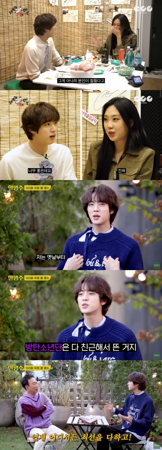 그간 쉼 없이 달려온 활동과 더불어 군입대 문제로 방탄소년단 멤버들은 개인 활동에 돌입했다. 제이홉, RM 등이 솔로 앨범을 계획했으며 다방면에서 활약 중이다. 이 가운데 단연 눈에 띄는 멤버는 진이다. 진은 솔로 앨범 발매뿐만 아니라 방송 활동이 많아졌기 때문이다. '차린 건 쥐뿔도 없지만' '할명수' 등 1020세대 취향에 맞는 유튜브 콘텐츠 뿐만 아니라 SBS '런닝맨'에도 출연해 활약했다.
