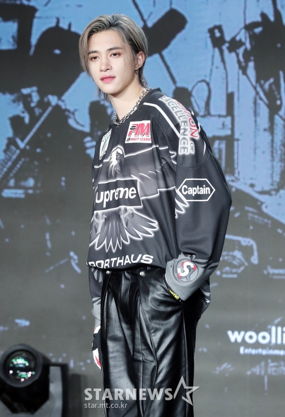 그룹 드리핀(DRIPPIN) 알렉스가 15일 오후 서울 강남구 청담동 일지아트홀에서 진행된 첫 번째 정규 앨범 '빌런 : 디 엔드(Villain : The End)' 발매 기념 쇼케이스에 참석해 포즈를 취하고 있다.