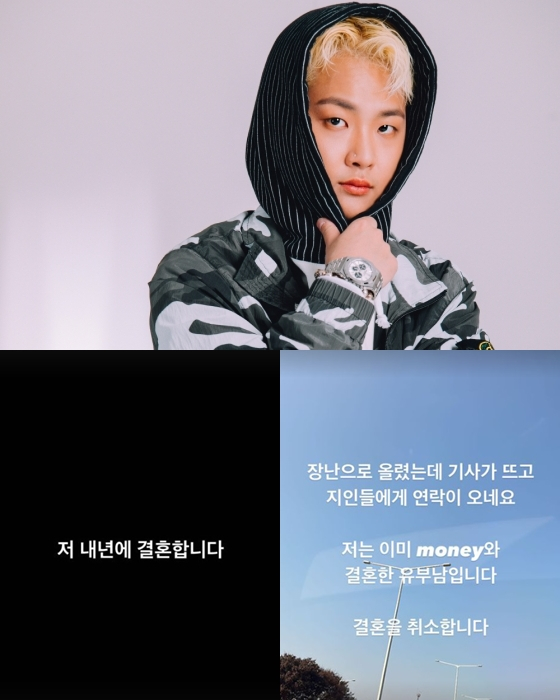 이후 10시간 뒤, "장난으로 올렸는데 기사가 뜨고 지인들에게 연락이 오네요"라며 "저는 이미 money(돈)와 결혼한 유부남입니다. 결혼을 취소합니다"라는 글을 남겼다.