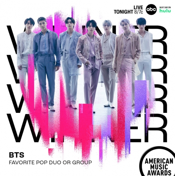 방탄소년단은 20일 오후 8시(현지 시각) 미국 LA 마이크로소프트 시어터에서 열리는 2022 AMAs에서 페이보릿 팝 듀오/그룹 부문 수상자로 선정됐다.