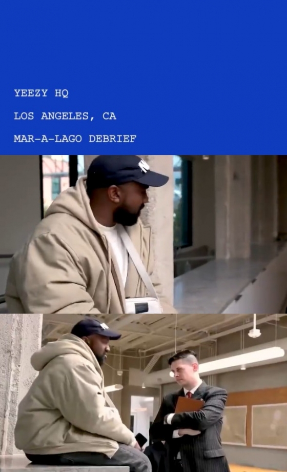 칸예 웨스트는 2018년 10월 집무실에서 도널드 트럼프 전 대통령과 뉴욕, 워싱턴DC에서 만난 적 있다고 밝혔다. 그는 "플로리다 사유지에서 도널드 트럼프에게 2024년 대선 러닝메이트가 되어달라고 요청했다"고 말했다.