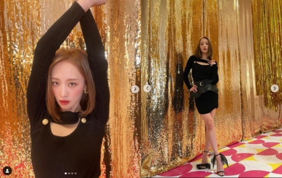 공개된 사진 속 니콜은 금빛 벽면을 배경 삼아 도도한 포즈를 취했다. 니콜은 여왕 같은 비주얼로 시선을 모았다.
