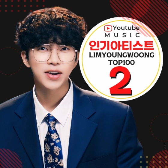 가수 임영웅이 유튜브 인기 아티스트 톱2에 오르며 독보적 인기를 보여줬다.