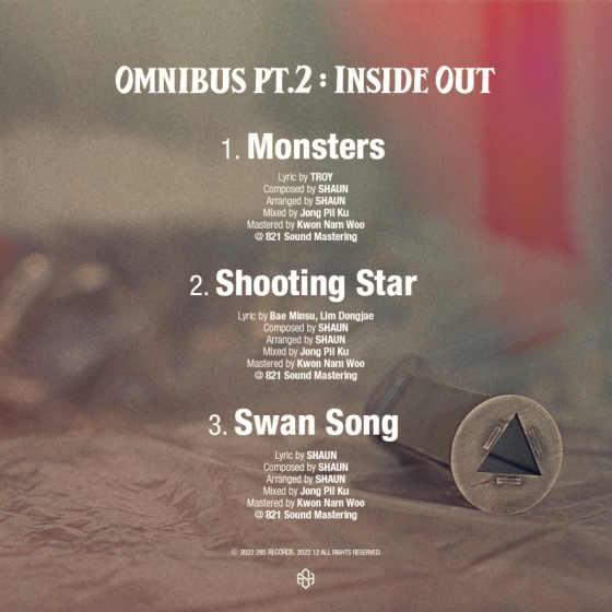 'Omnibus pt.2 : Inside Out'은 지난 7월 발매된 'Omnibus pt.1 : 만화경(Kaleidoscope)'의 서사를 잇는 작품이다. 전작이 만화경 속 세상을 들여다보는 시점이라면, 이번 새 EP에서는 반대로 만화경 속에서 숀을 바라보는 시점이다.
