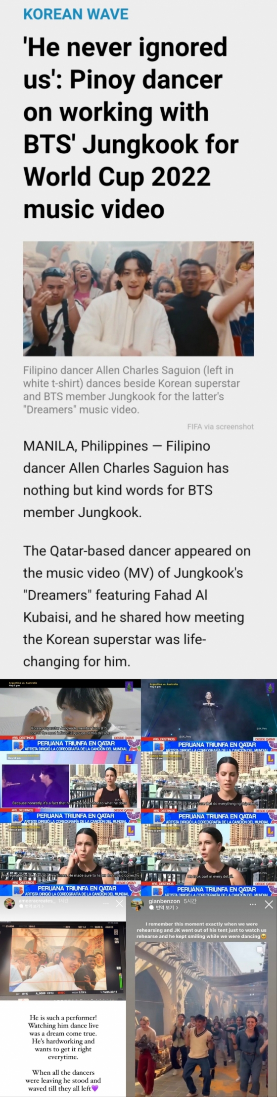 필리핀 영자 신문 '더 필리핀 스타'(The Philippine Star)는 "정국의 'Dreamers' 뮤직비디오에 출연한 댄서가 한국 슈퍼 스타와의 만남이 자신의 인생을 어떻게 바꿔 놓았는지 공유했다"고 전했다.