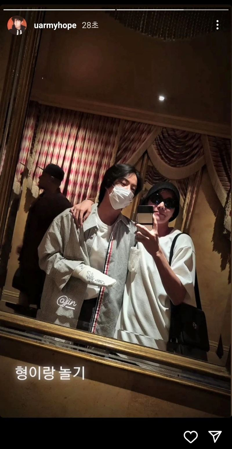 제이홉 또한 다음날 자신의 인스타그램에 '형이랑 놀기'라는 글과 함께 진과 다정한 순간을 공개, 라스베이거스의 3대 쇼로 꼽히는 '오쇼'(태양의 서커스, O By Cirque Du Soleil)를 함께 보러 간 사진으로 팬들에게 깊은 행복을 선사했다.