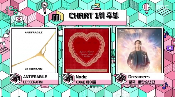 17일 방송된 MBC '쇼! 음악중심' 12월 셋째 주는 1위 후보에는 르세라핌, (여자)아이들, 방탄소년단 정국이 올랐다.