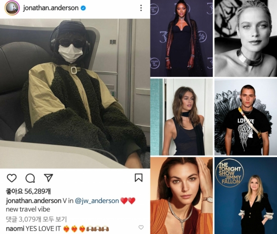 패션 디자이너 조나단 앤더슨(Jonathan Anderson)은 최근 뷔가 비행기 안에서 촬영한 인스타그램에 게재했다. 뷔가 자신의 브랜드 옷을 입고 있는 것을 발견한 것.