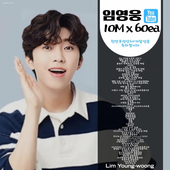 가수 임영웅이 유튜브 천만뷰 영상 60개를 달성하며 독보적 인기를 빛냈다.