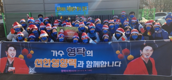 영탁 팬클럽 '영탁이찐이야'는 12월 24일 서울 영등포 지역 어려운 이웃을 찾아 800만 원 상당 연탄과 라면을 전달했다.