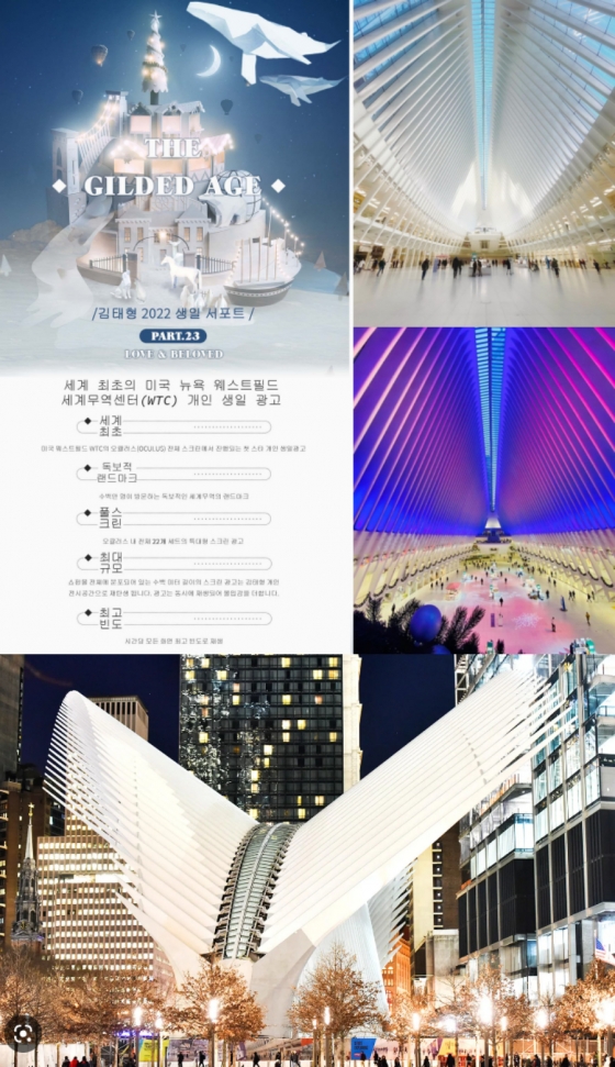 방탄소년단(BTS) 뷔가 세계 최초로 뉴욕 월드트레이드센터(WTC) 오큘러스(Oculus)의 초대형 스크린 생일광고의 주인공이 된다.
