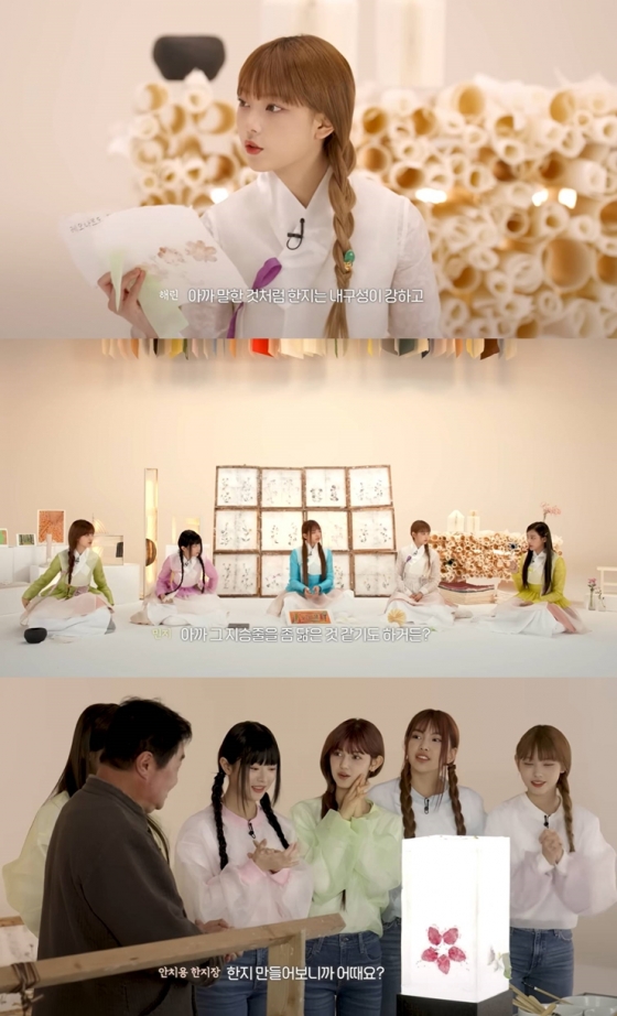 공진원 유튜브 채널에 게재된 이 영상에서 뉴진스 멤버들은 한국 전통문화인 한지의 가치와 매력 등을 소개했으며, 직접 한지를 만드는 체험에 나섰다.
