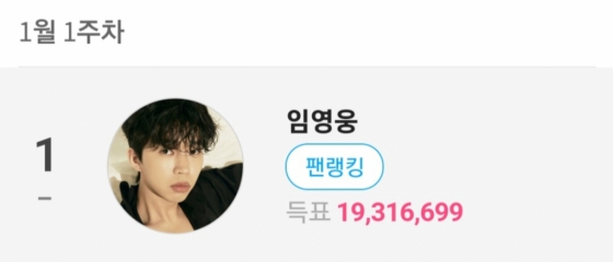임영웅은 1월 1주차 팬앤스타 솔로 랭킹에서 1931만 6699표를 얻어 1위를 차지했다.