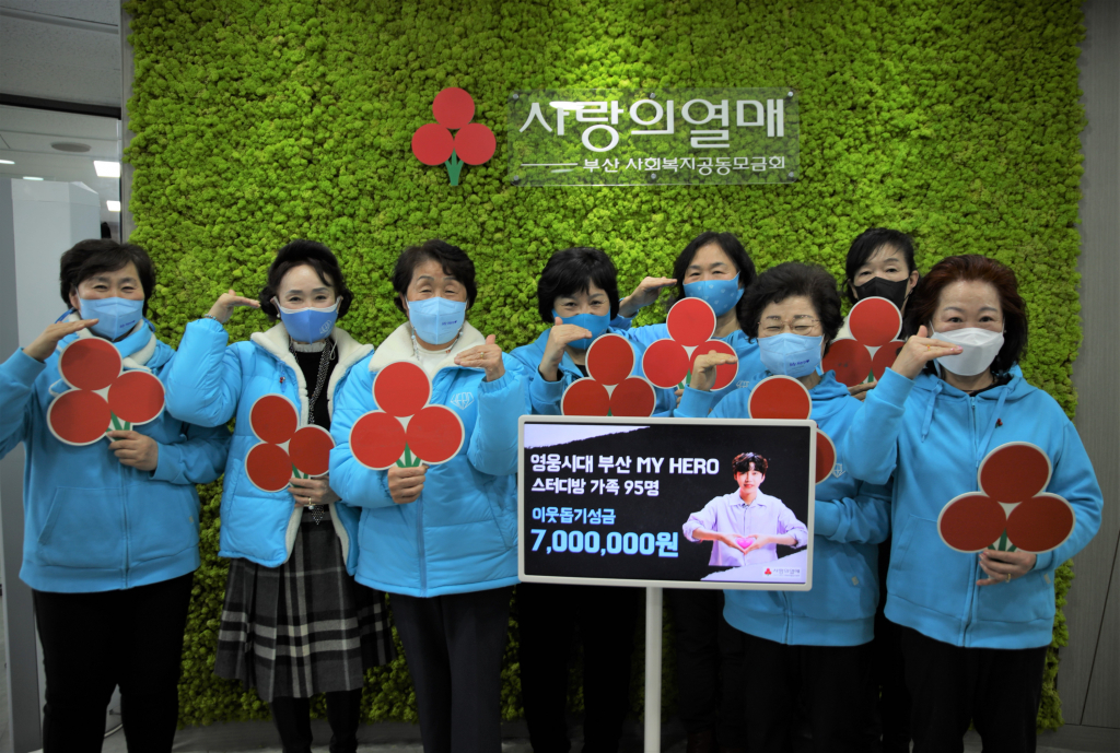 영웅시대 부산 MY HERO 스터디방은 2020년 7월 결성돼 현재 95명의 회원이 함께 활동하고 있다. 지난해 8월에는 아동·청소년을 위해 500만 원 성금을 기부하는 등 연 2회 나눔 활동을 진행하고 있다.