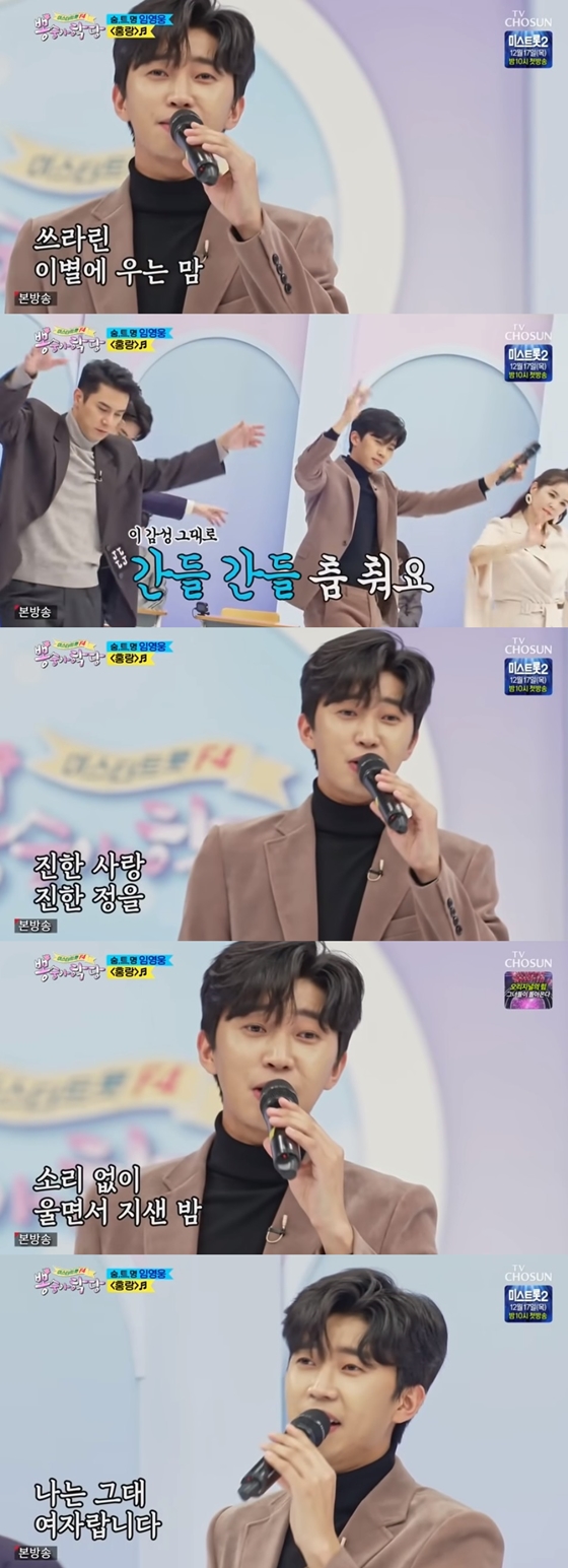 영상에는 TV조선 '뽕숭아학당'에서 임영웅이 펼친 '홍랑' 무대가 담겼다.