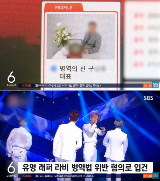 12일 SBS는 병역 비리 사건 뉴스를 전하며 아이돌 그룹 출신 래퍼 빅스 라비를 병역법 위반 혐의로 입건했다고 보도했다.