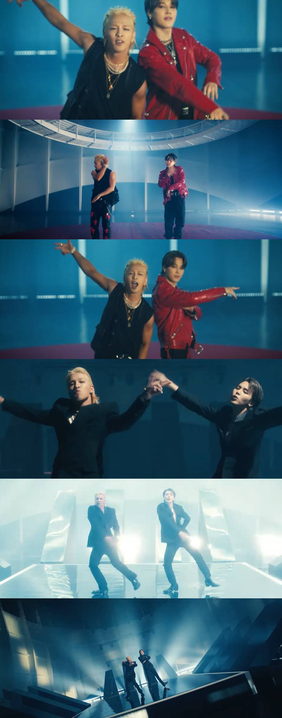 태양과 지민은 뮤직비디오에서도 신선한 듀오로 눈길을 끌었다. 태양, 지민은 자유분방한 무빙 속에서도 부분 부분 파워풀한 포인트를 절도 있게 보여주는가 하면, 어깨동무를 하며 훈훈한 친분을 과시하기도 했다. 보컬, 댄스로 손색 없던 이들인데, 빅뱅과 방탄소년단 각 그룹 색깔이 섞여 보이는 것도 흥미로운 지점이다.