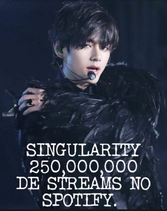 방탄소년단(BTS) 뷔의 솔로곡 'Singularity'(싱귤래리티)가 스포티파이(Spotify) 스트리밍 2억 5000만을 돌파하며 인기를 빛냈다.